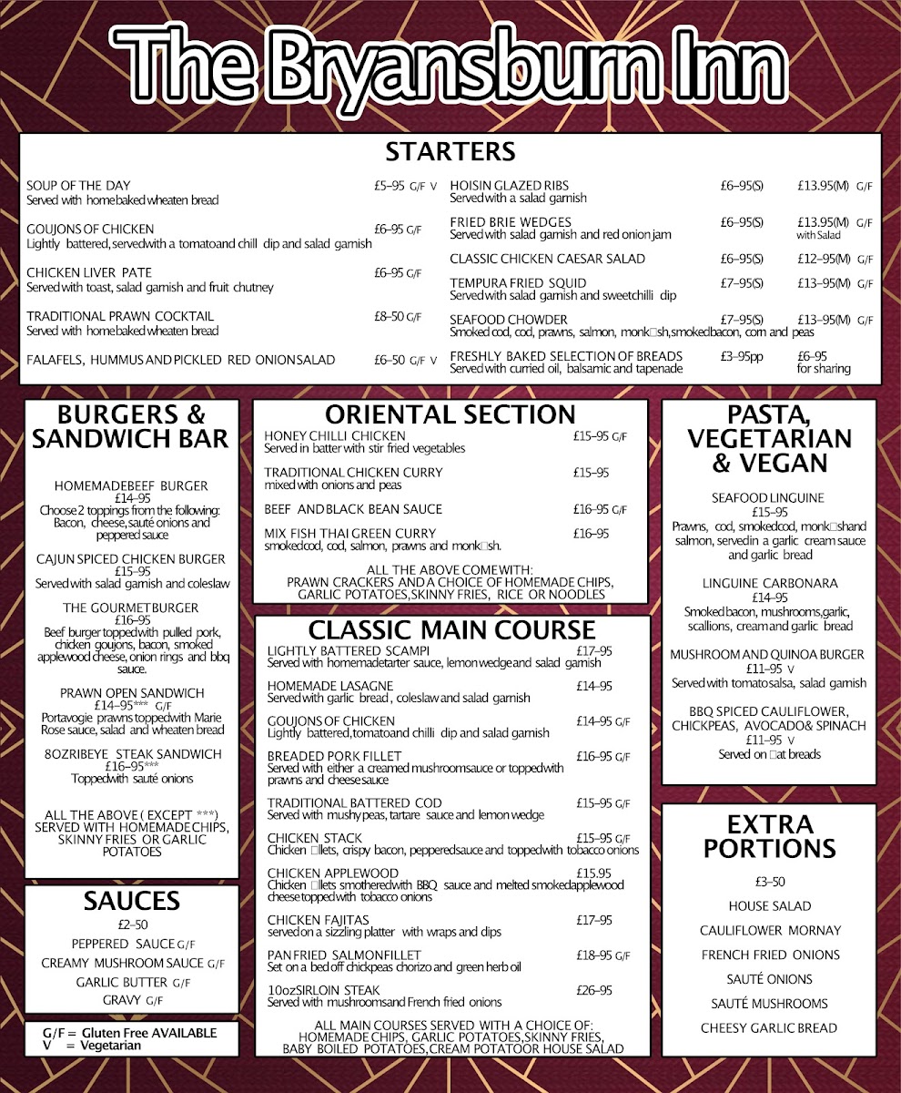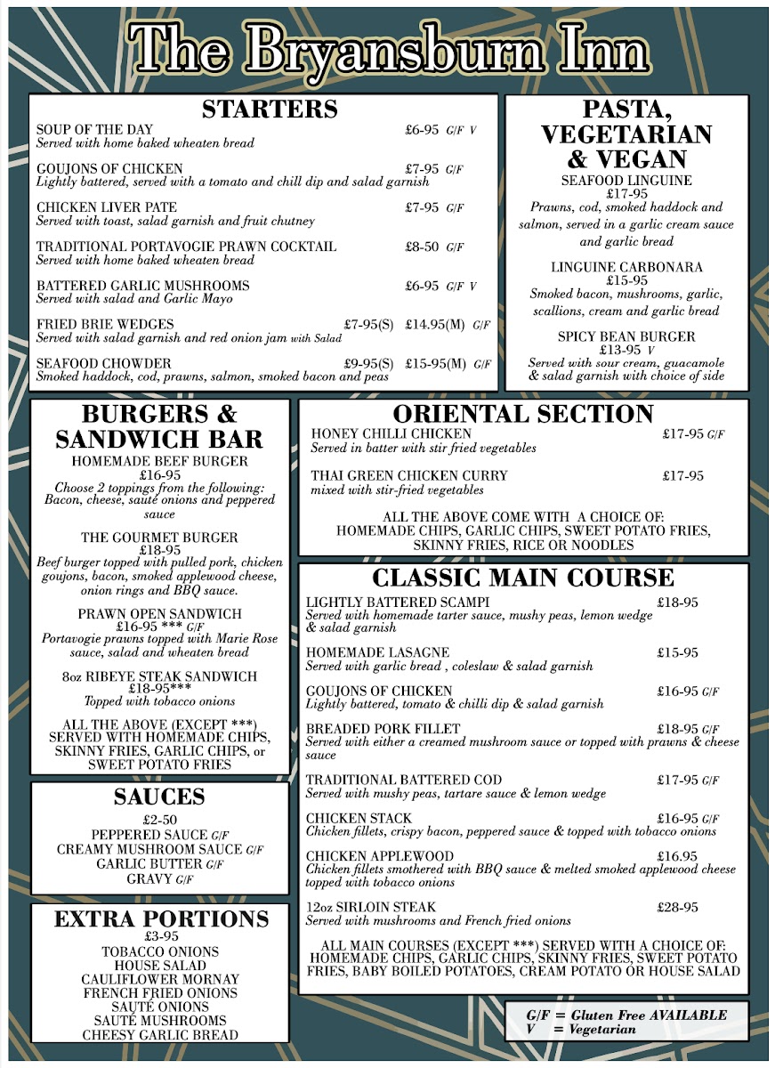 Welcome to Bryansburn Inn Bar and Grill, a culinary gem located at 151 Bryansburn Rd, Bangor. This charming establishment offers a diverse menu that caters to all tastes, featuring a delightful array of main courses, a dedicated children's menu, and a thoughtful vegetarian selection.